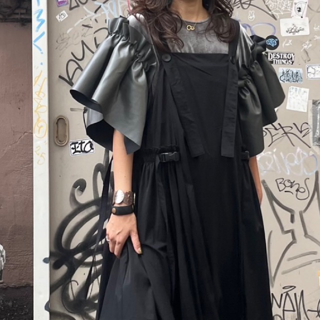 ※モデル身長166㎝ サイズ フリー 【メーカー表記サイズ】 Mサイズ 【実寸サイズ(平置き採寸)】 丈 約62㎝ 胸囲 約112㎝ 袖丈 約21㎝ 腕周り 約46㎝ 裾周り 約113㎝ 素材 本体 ポリエステル 95% ポリウレタン 5% 袖部分 合成皮革 ※サイズ等、不明な点ございましたら、お気軽にお問い合わせくださいませ。 また、ショップ情報一覧をご確認の上ご購入お願い致します。