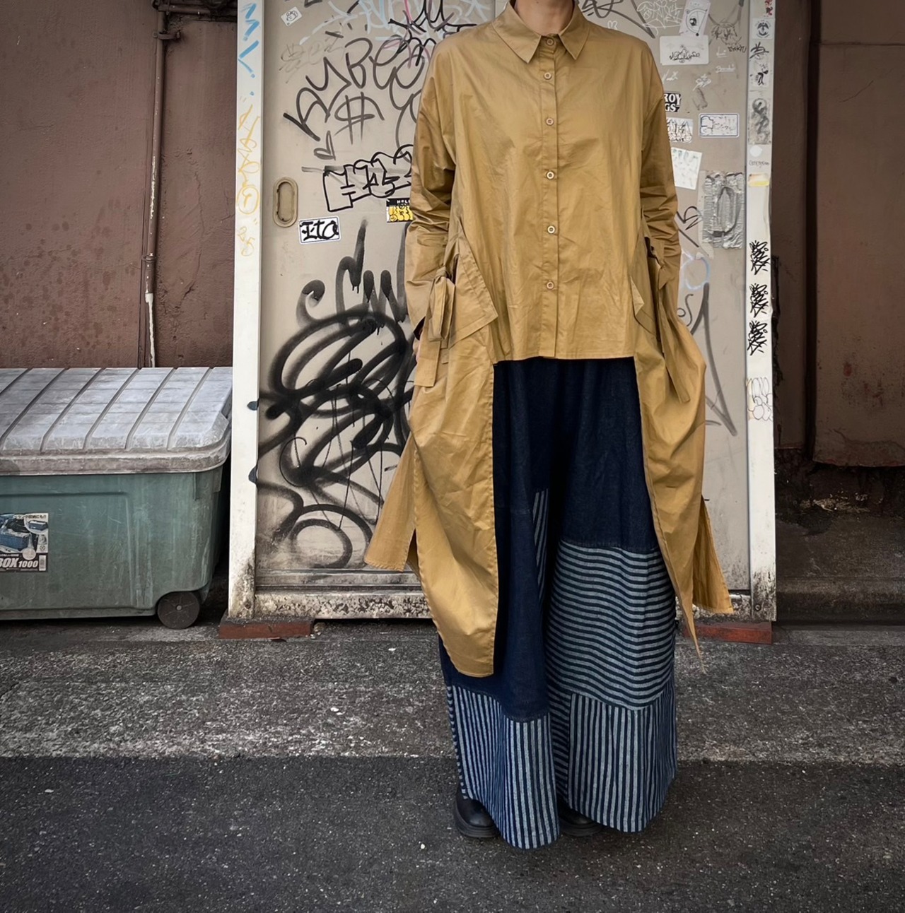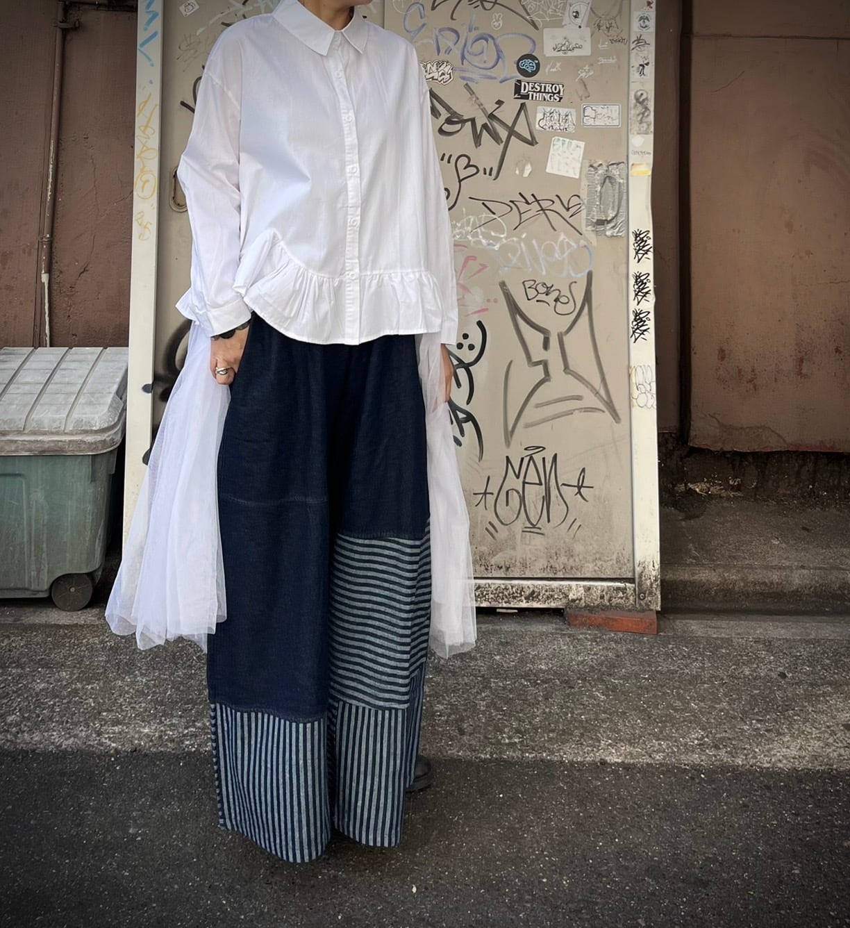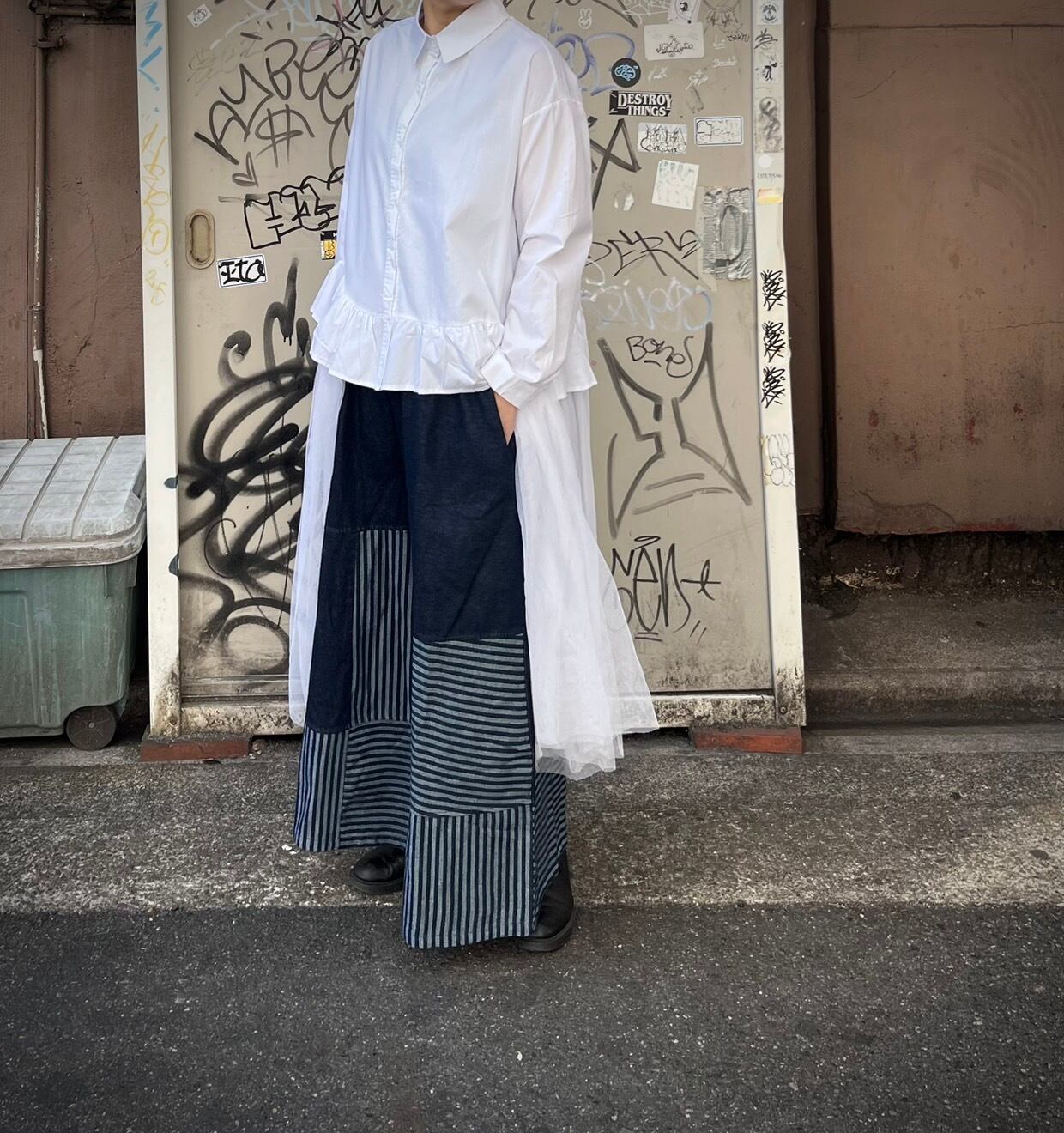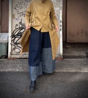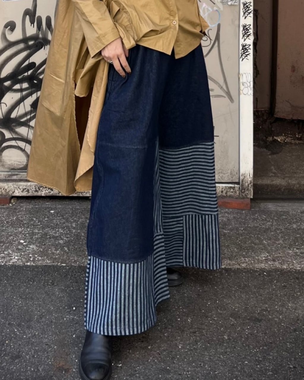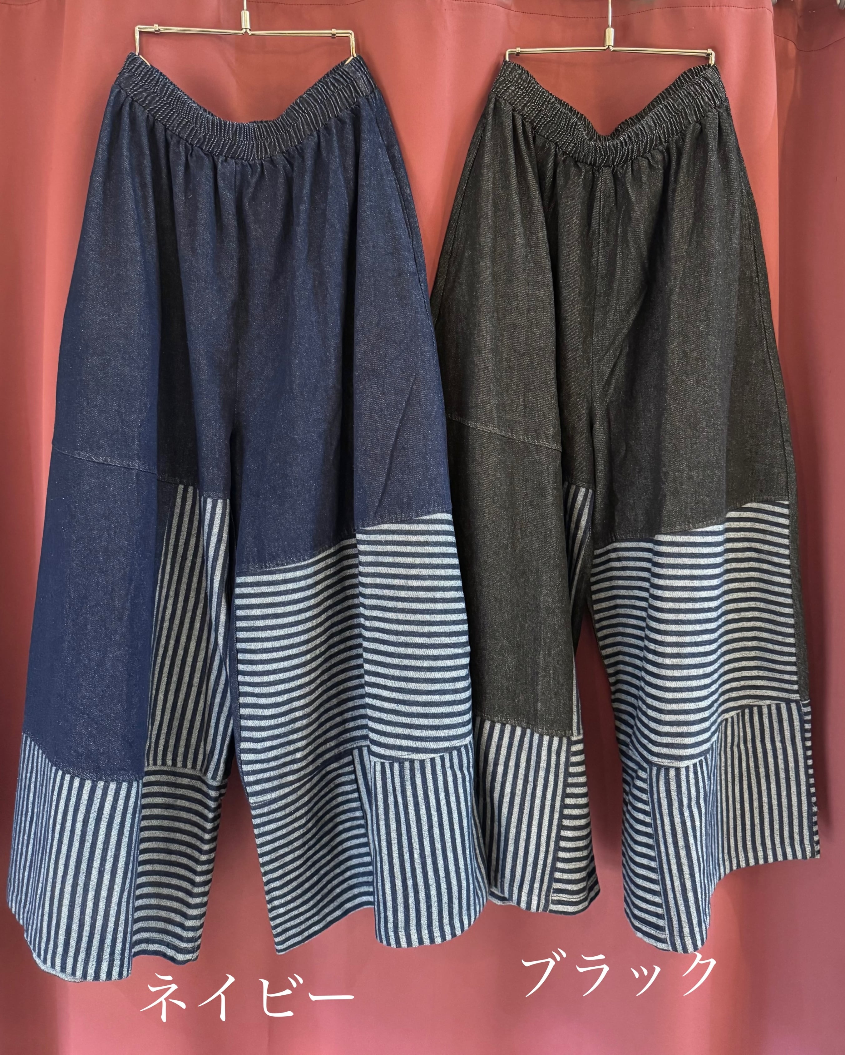 ストライプ切り替え デニムワイドパンツ<0004>