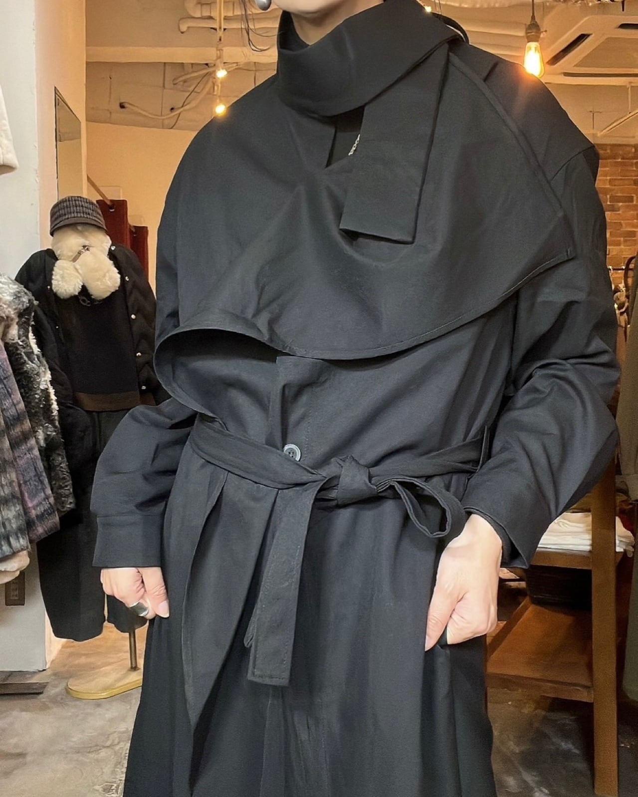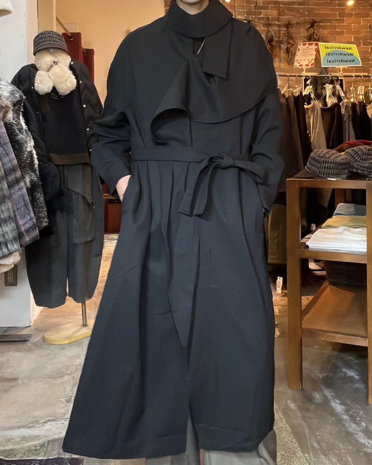 アシメ ドレープ襟コート<0122>